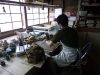 作業場の側面の壁は土壁になっていて、室内の乾燥を防ぎ温度調節をしてくれるそうです。(製陶ふくだ 作業場)